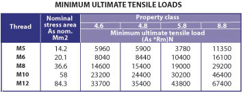 MINIMUM ULTIMATE TENSILE LOADS