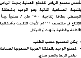 Metal Parts Factory (RMPF) was founded in Riyadh, Second
